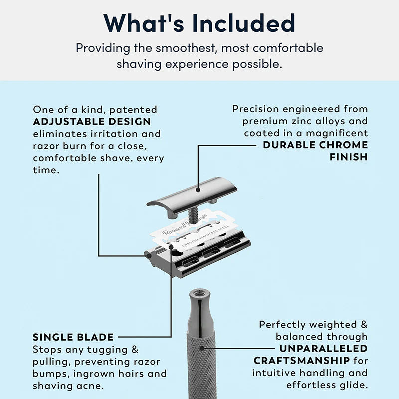 • Includes Rockwell sizes 1 and 3 - our most popular settings, making the Rockwell 2C a great beginner classic razor.
