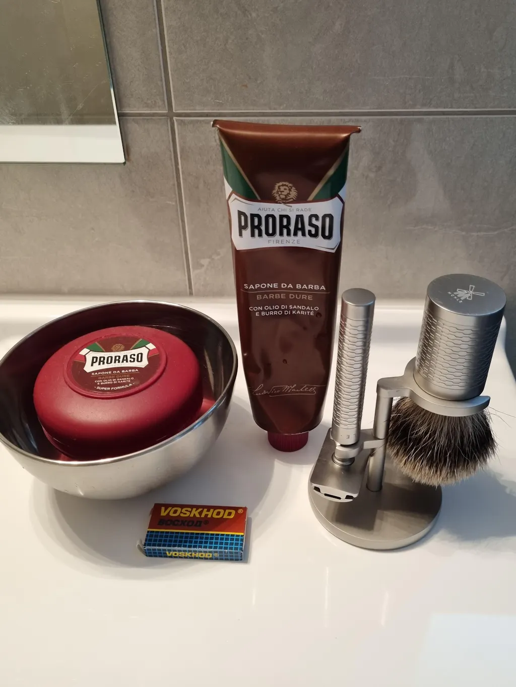 Step 3: Gently spread about 2cm of Proraso Shaving Cream amount the bristles of the brush