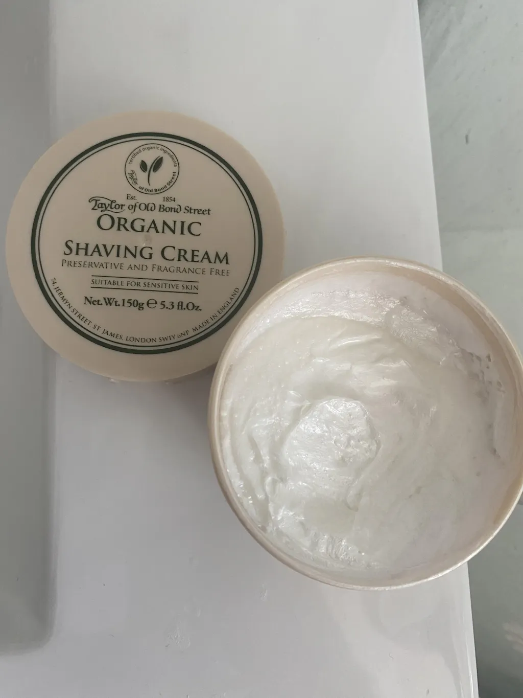 Taylor creams will also vary in consistency from batch to batch. Sometimes being quite soft, with content easily shifting side to side in the jar (especially on hot summer days). And other times slightly firmer like a Croap (Cream+Soap=Croap), still featuring the texture of a cream and very easy to lather with a brush.