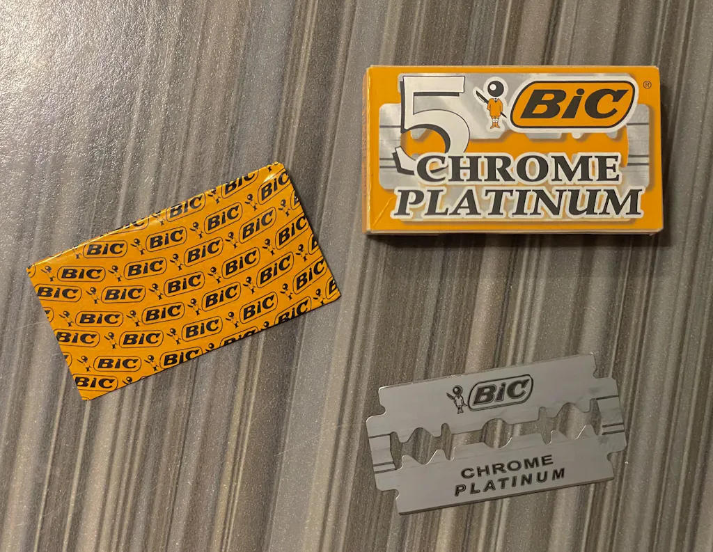 Bic Chrome Platinum Blades DE blades made from stainless steel come in packs of 5 blades.