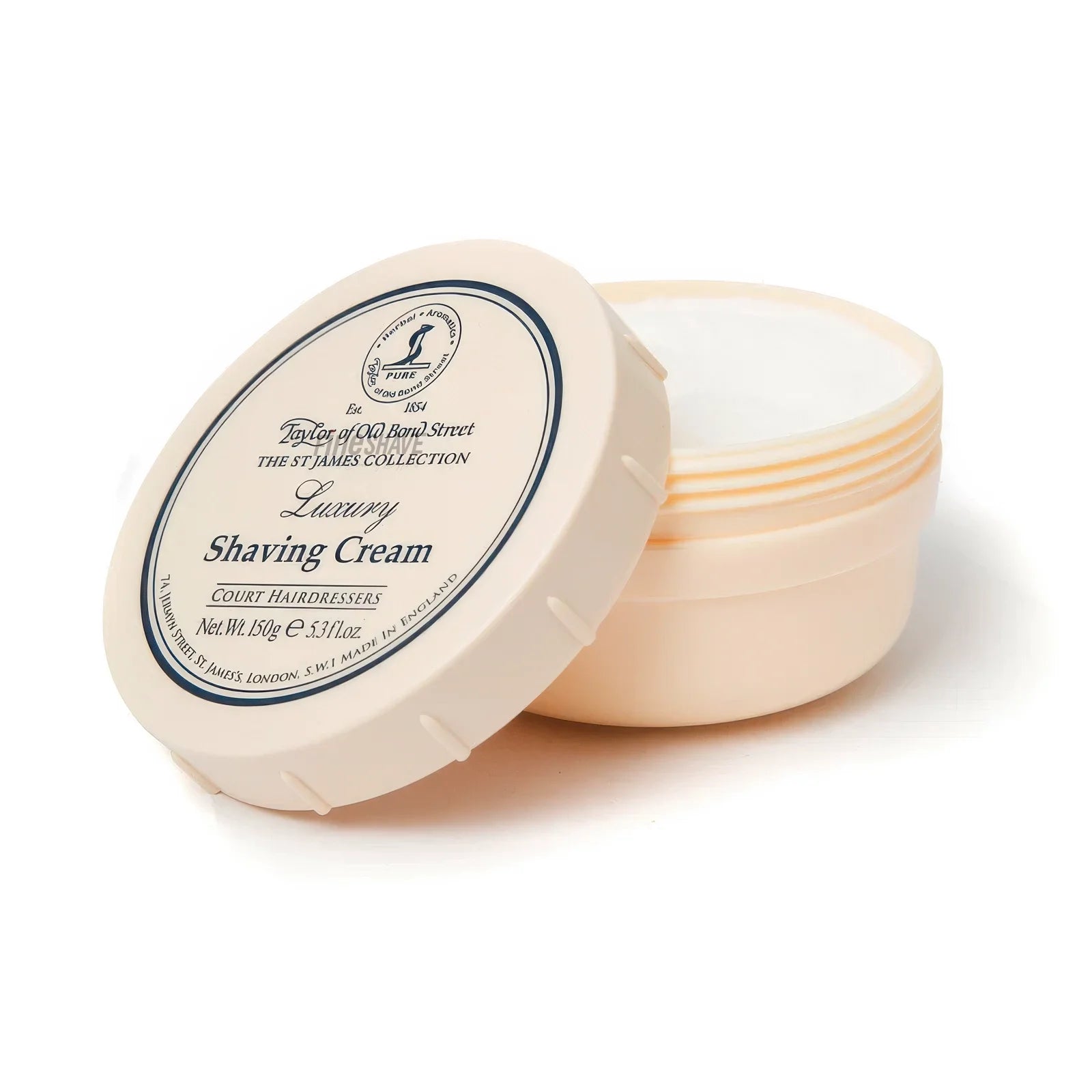 Taylor of Old Bond Street Luxury Shaving Cream bowl, St James Street Collection. It creates a uniquely smooth and creamy lather whilst protecting and moisturising the skin to give a better shave.